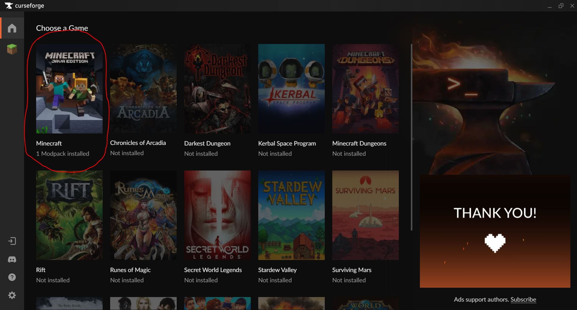 2. 먼저 curseforge에서 마인크래프트를 눌러줍니다.